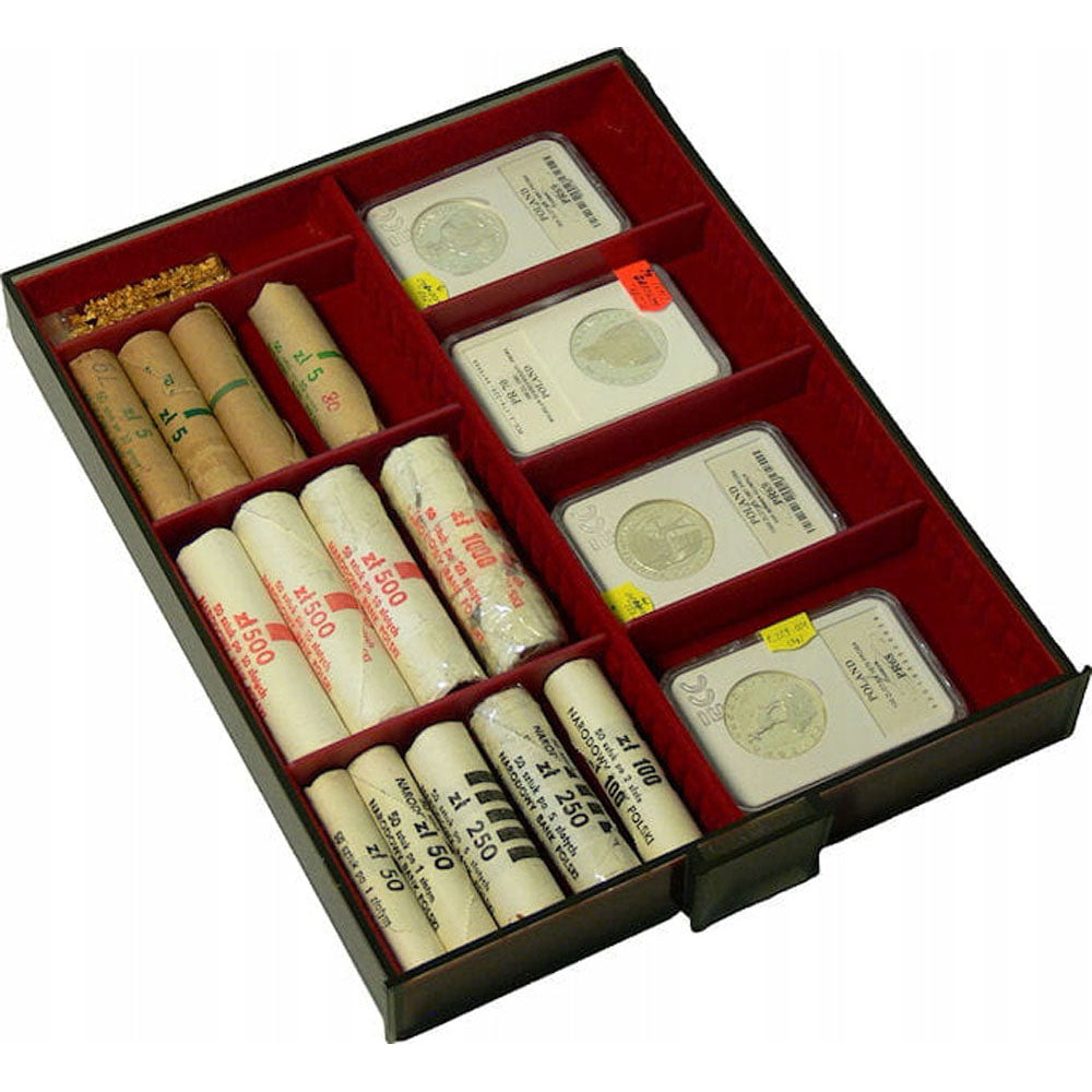 Display and protect your coin collection with the Leuchtturm Variable Division Coin Box in smoke and red. This elegant and practical coin box offers a secure solution for storing and showcasing your valuable coins. Whether you're a seasoned numismatist or just starting out, this coin box ensures that each coin is stored safely and beautifully presented. Let this Leuchtturm coin box be your trusted companion as you manage and showcase your coin collection, adding a touch of sophistication and order to your numismatic pursuits.