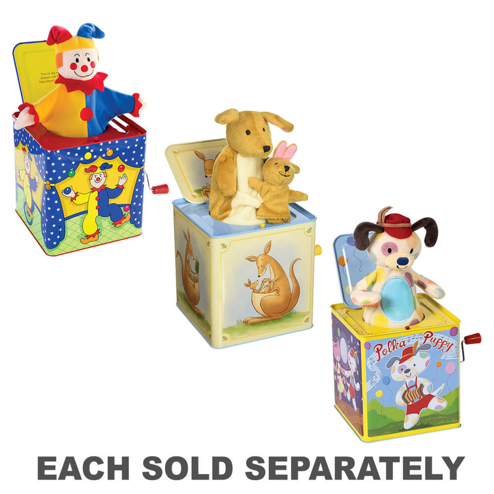 El Polka Puppy Jack in the Box es un juguete único de Schylling Toys, el líder mundial en juguetes tradicionales y diversión clásica. El cachorro de polka parece un gato normal en la caja, pero el interior escondido es un secreto. Gire el mango y escuche "Pop Goes the Weasel" hasta que salga el cachorro. Pero entonces, ¡sigue girando el mango y baila a la música! Es una sorpresa encantadora. Para el niño que puede ser sorprendido por el pop, el cachorro puede bailar desde la posición abierta, eliminando cualquier susto potencial. El cachorro de polka está decorado en una caja de lata en relieve con deliciosas ilustraciones.