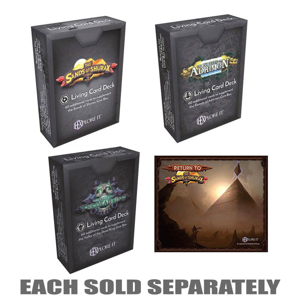 • 24 Cartas Peril: Recentemente introduzida neste baralho, essas cartas perigosas iniciam cenários desafiadores para os heróis superarem e oferecem enormes recompensas àqueles que podem!