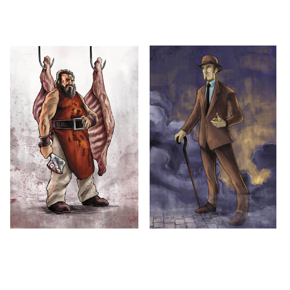 • O outro jogador é o investigador, que tem 8 anos para desmascarar, ajudado por três detetives se movendo pelo tabuleiro e olhando para as ruas seguidas ou colunas.