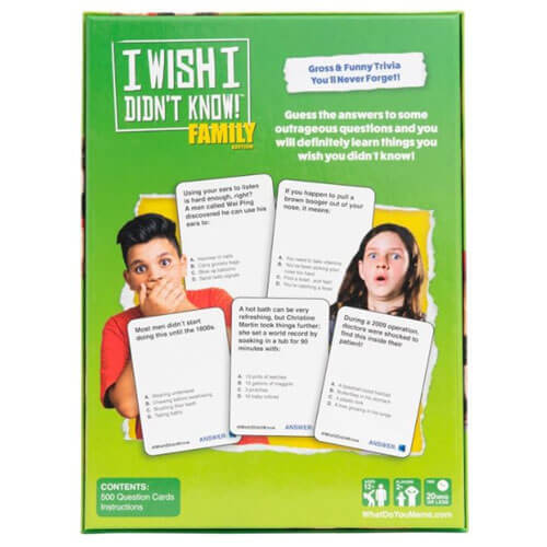 Familjevänligt trivia-spel! Testa din kunskap om allt konstigt, off-beat, roligt och grovt. Ämnen inkluderar poop, farts, burps, bakterier, relationer och fantastiska världsrekord. Efter att ha spelat garanterar vi att du säger att jag säger â € ¬å "Jag önskar att jag inte vet!"