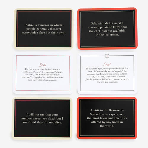 • Det finns två sätt att spela: tävla om poäng i ett enkelt grammatikspel, eller spela med stil och syntax och piska författarens meningar i fantastisk form.