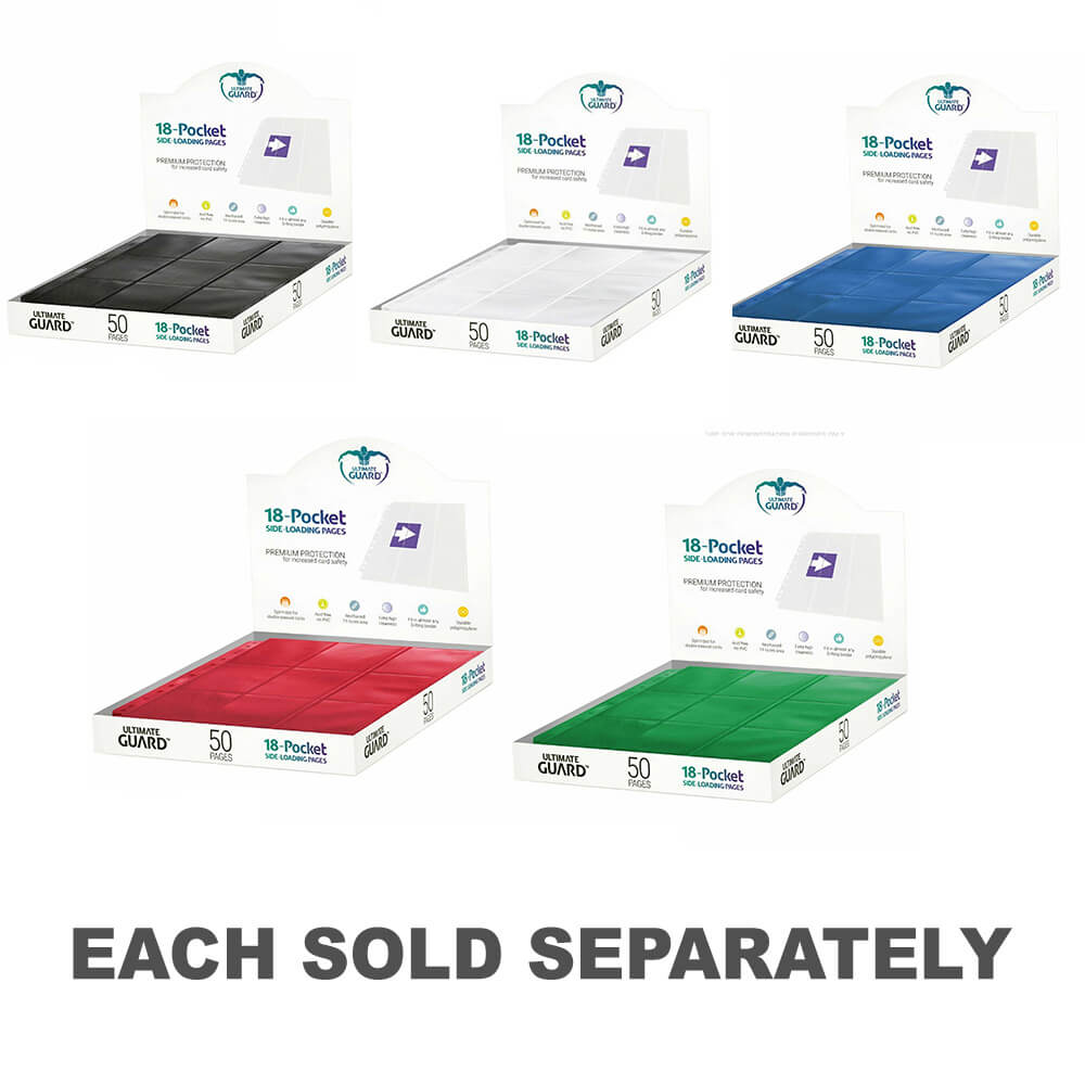 Högkvalitativ, dubbelsidig ficksidor (9 fickor på varje sida), som passar in nästan alla D-ringbindemedel, för att lagra och visa upp till 18 dubbelärmade kort per sida. 50 sidor per förpackning.